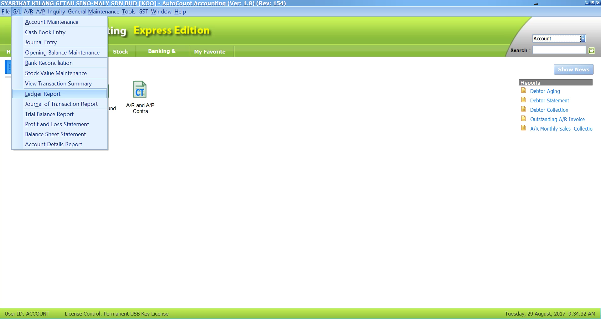 Below are the steps on how to extract General Ledger from Autocount accounting package.